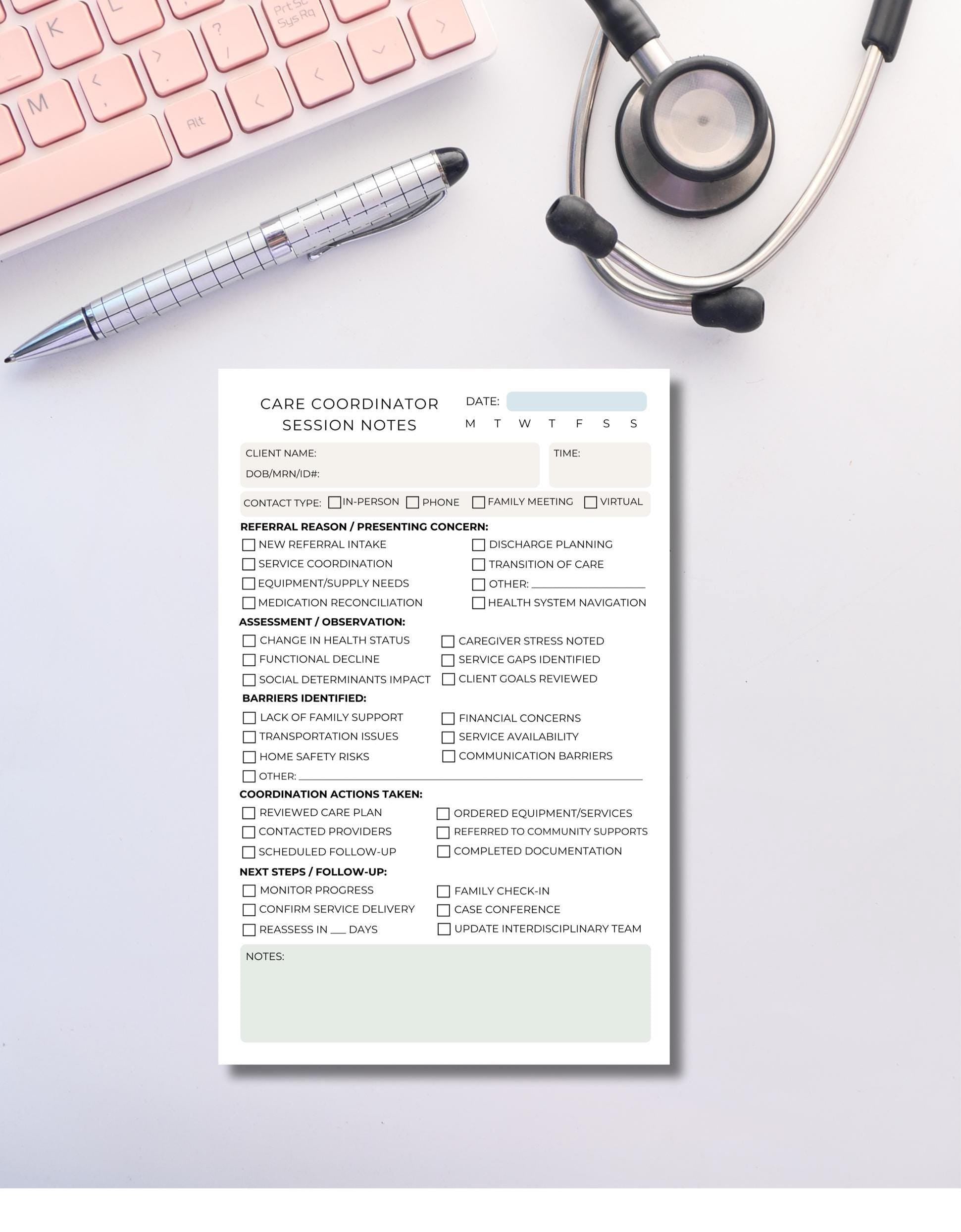 Care Coordinator Session Note Notepad Case Management Notes Social Work Documentation Healthcare Professional Notepad Health Care Navigator