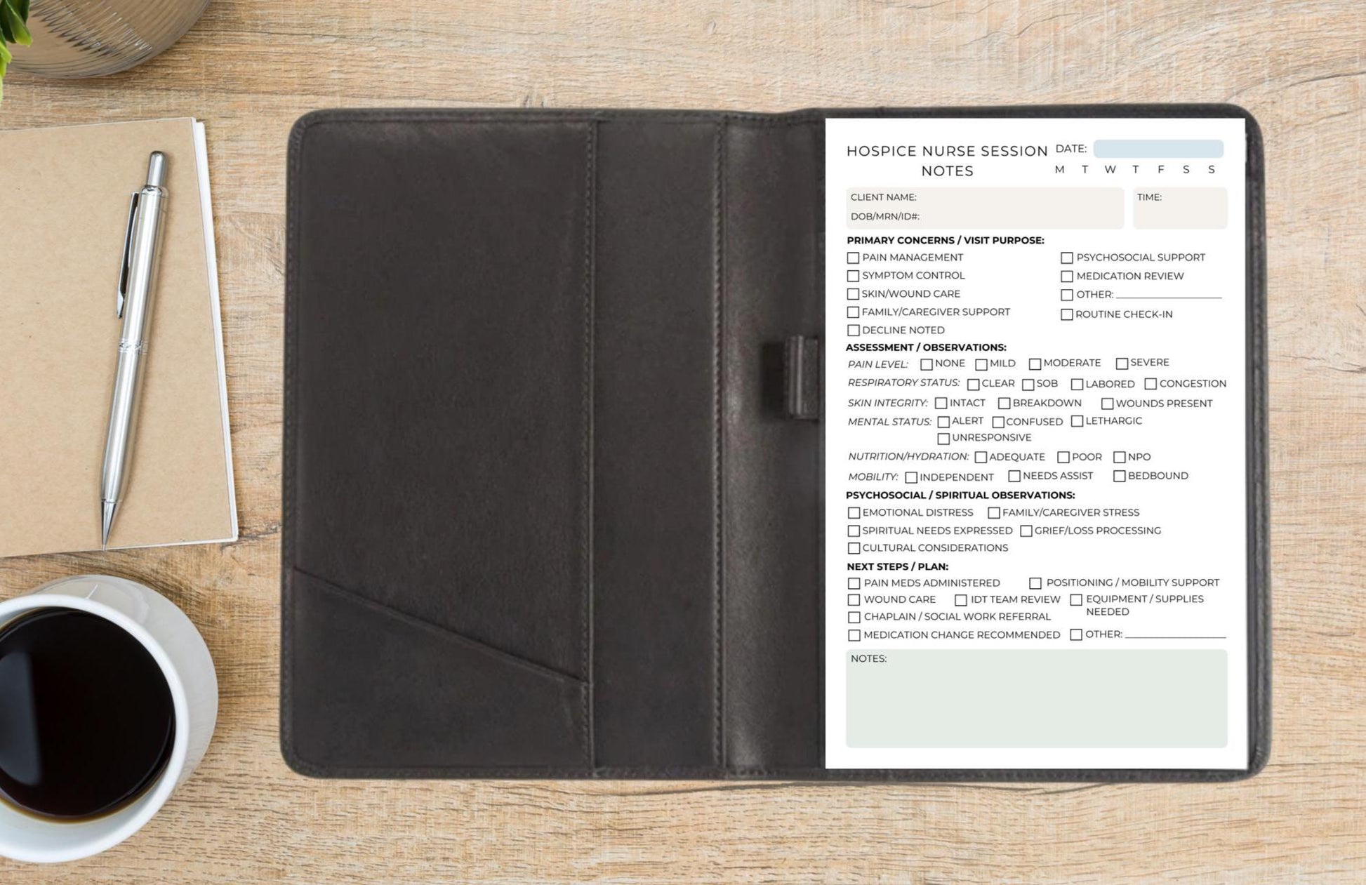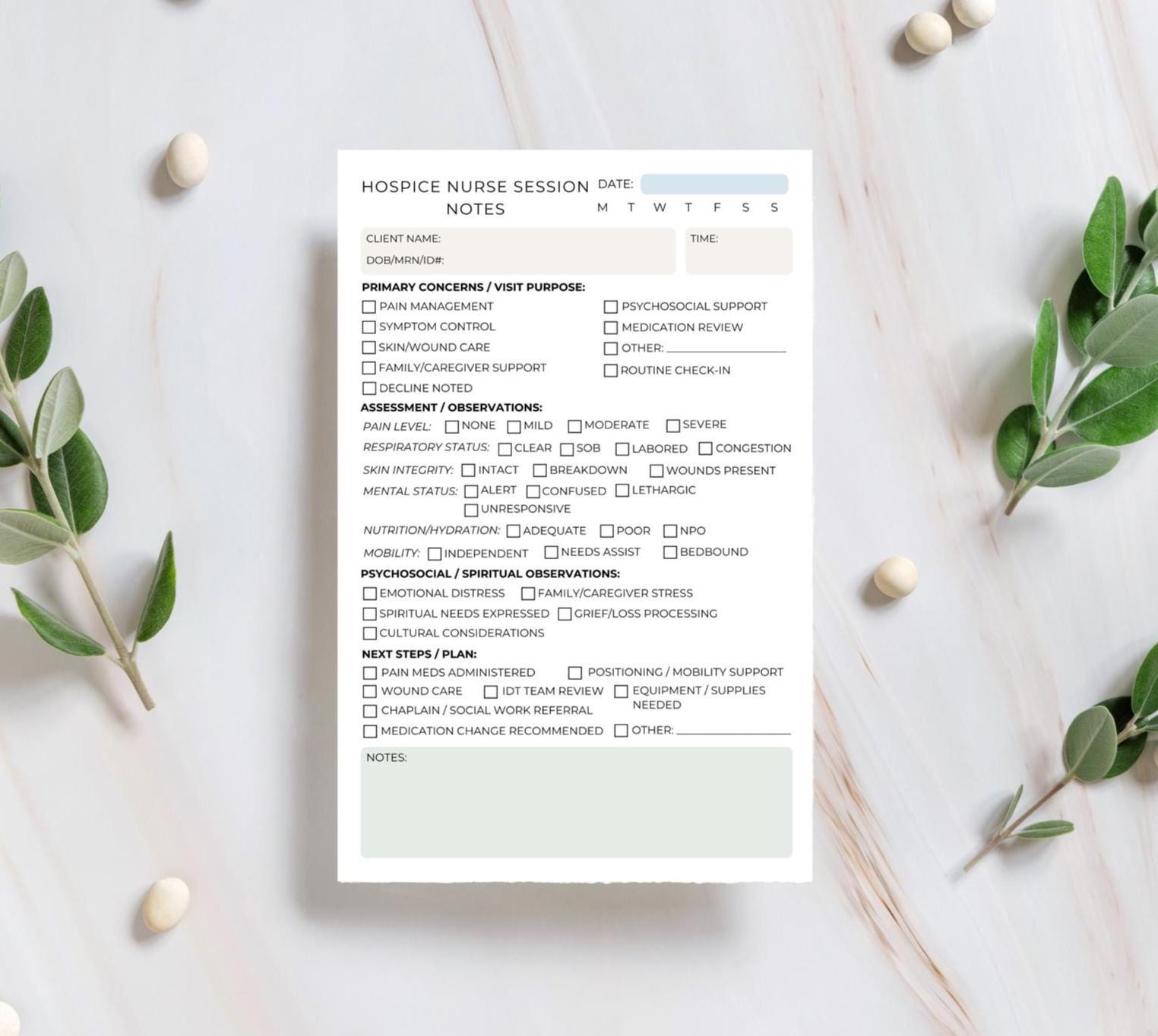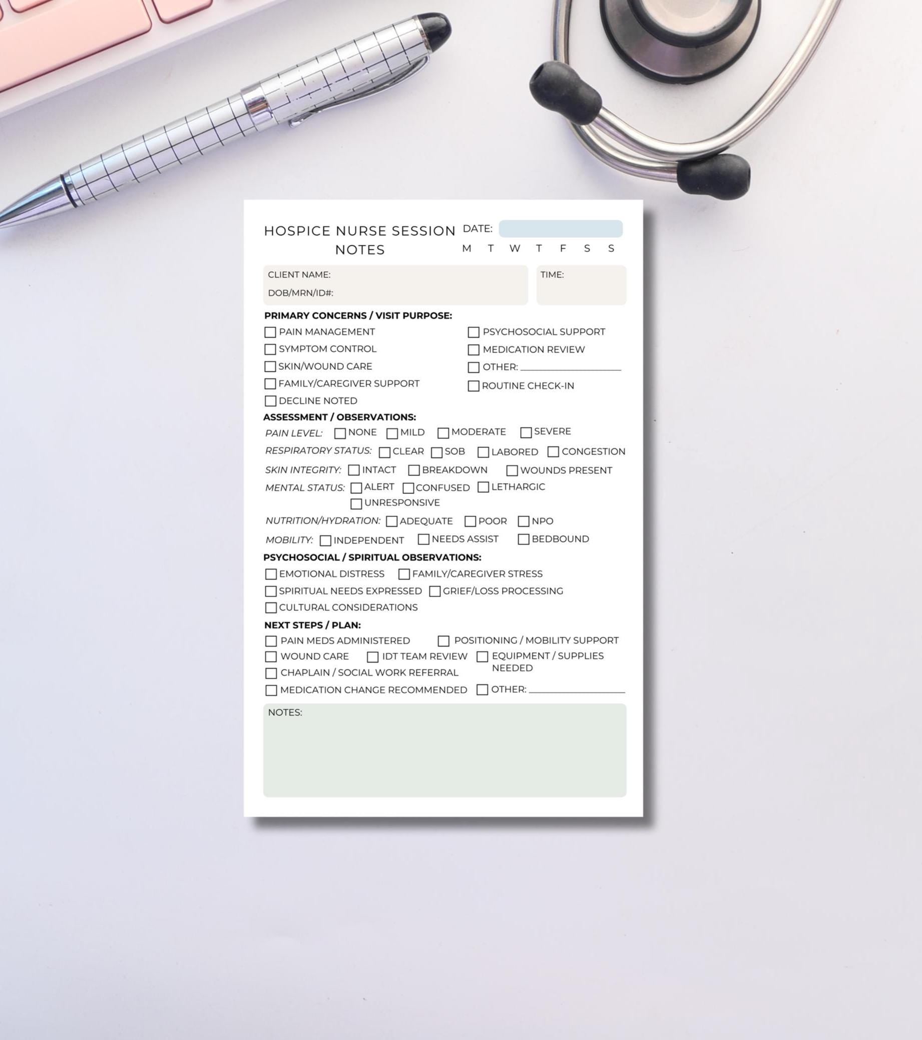 Hospice Nurse Session Notes Notepad Daily Visit Documentation Pad for End-of-Life Care Palliative Care, and Home Health Nursing Hospice gift