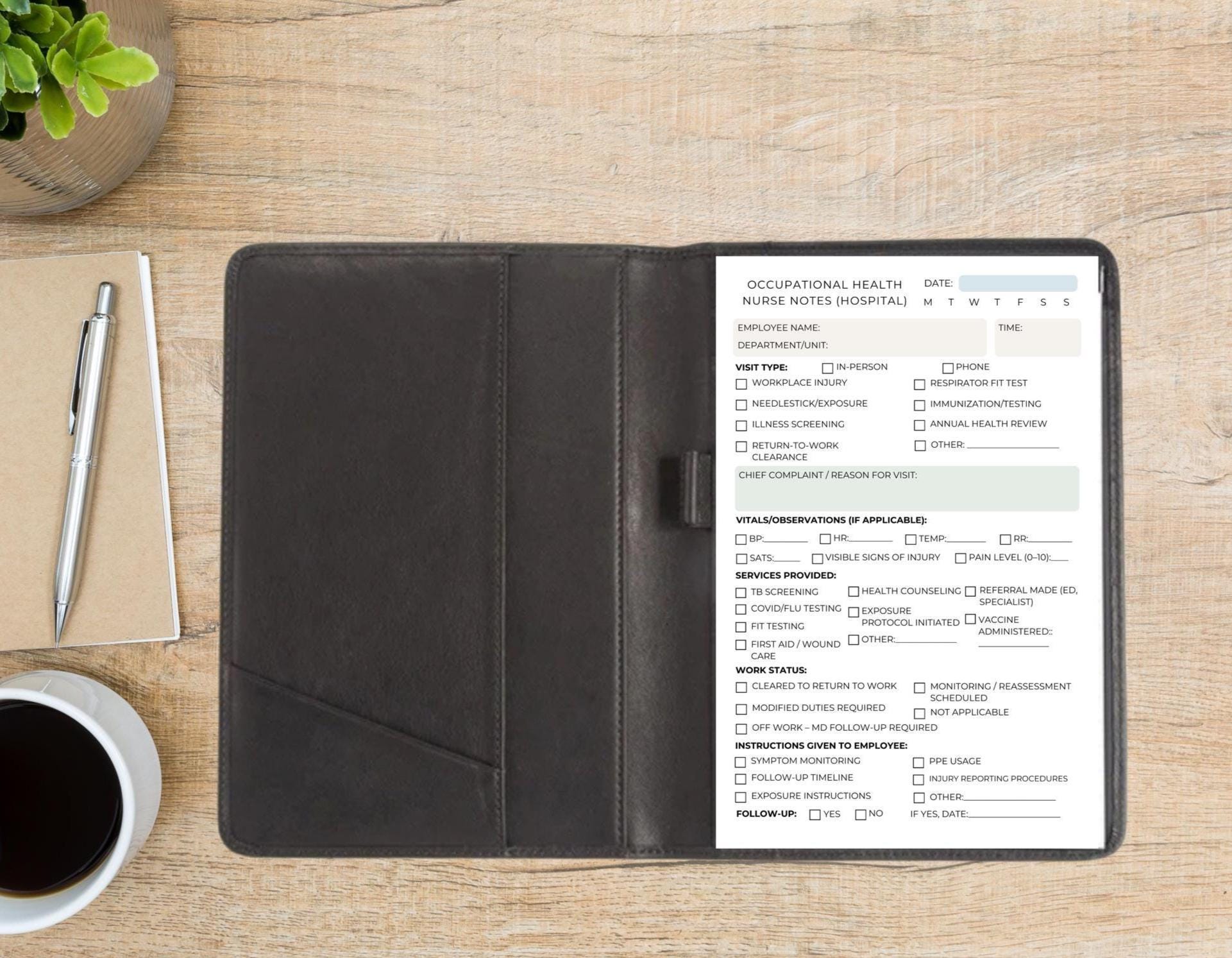 Occupational Health Nurse Session Notes – Corporate & Community Setting | Medical Notepad for OHNs | RN Notepad OHN Workplace safety notes