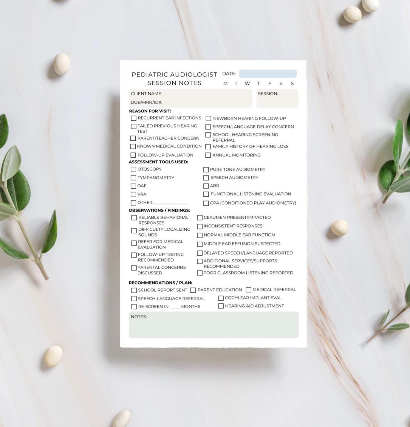 Pediatric Audiologist Session Notes Notepad | Hearing Evaluation Chart | 5.5"x8.5" | Pediatric Audiology Record Pad for Clinic Use