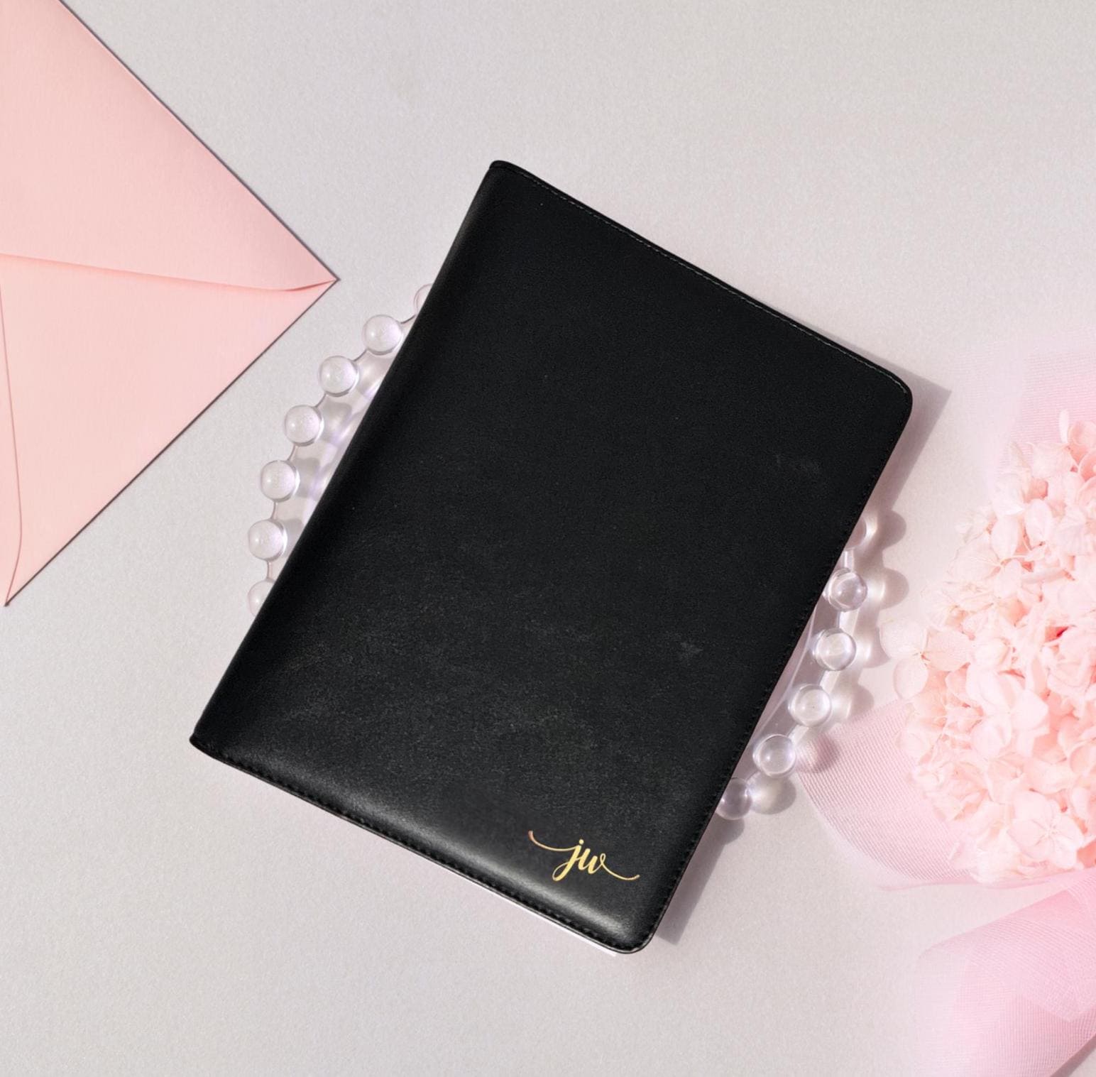 Upgrade your notepad with a sleek, professional padfolio—perfect for taking notes on the go or keeping your paperwork organized in style. This 9" x 7" padded black leatherette padfolio is designed to perfectly hold your 5.5" x 8.5" notepads. It features interior pockets for documents, a built-in card holder, and a secure notepad slot—ideal for clinical rounds, client sessions, or meetings. Make it truly yours with your initials heat-embossed in elegant gold foil on the front cover.