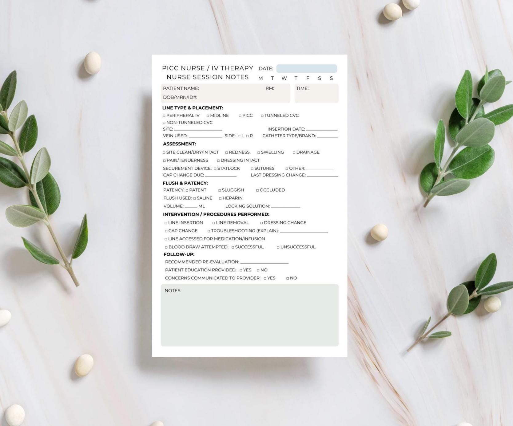 Keep detailed, accurate records of your vascular access procedures with this professional PICC Nurse / IV Therapy Session Notepad, designed specifically for nurses specializing in IV therapy, PICC insertions, and central line management. Perfect for use in hospitals, infusion clinics, long-term care, or outpatient settings, this notepad helps streamline your documentation for line type, site assessment, interventions, and follow-ups—all in one convenient place.