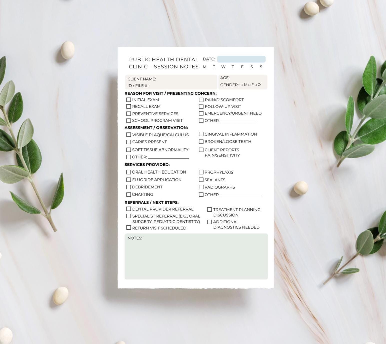 Public Health Dental Hygienist Session Note Notepad | 5.5"x8.5" Oral Health Documentation Pad | 50 Tear-Off Sheets for School & Clinic Use