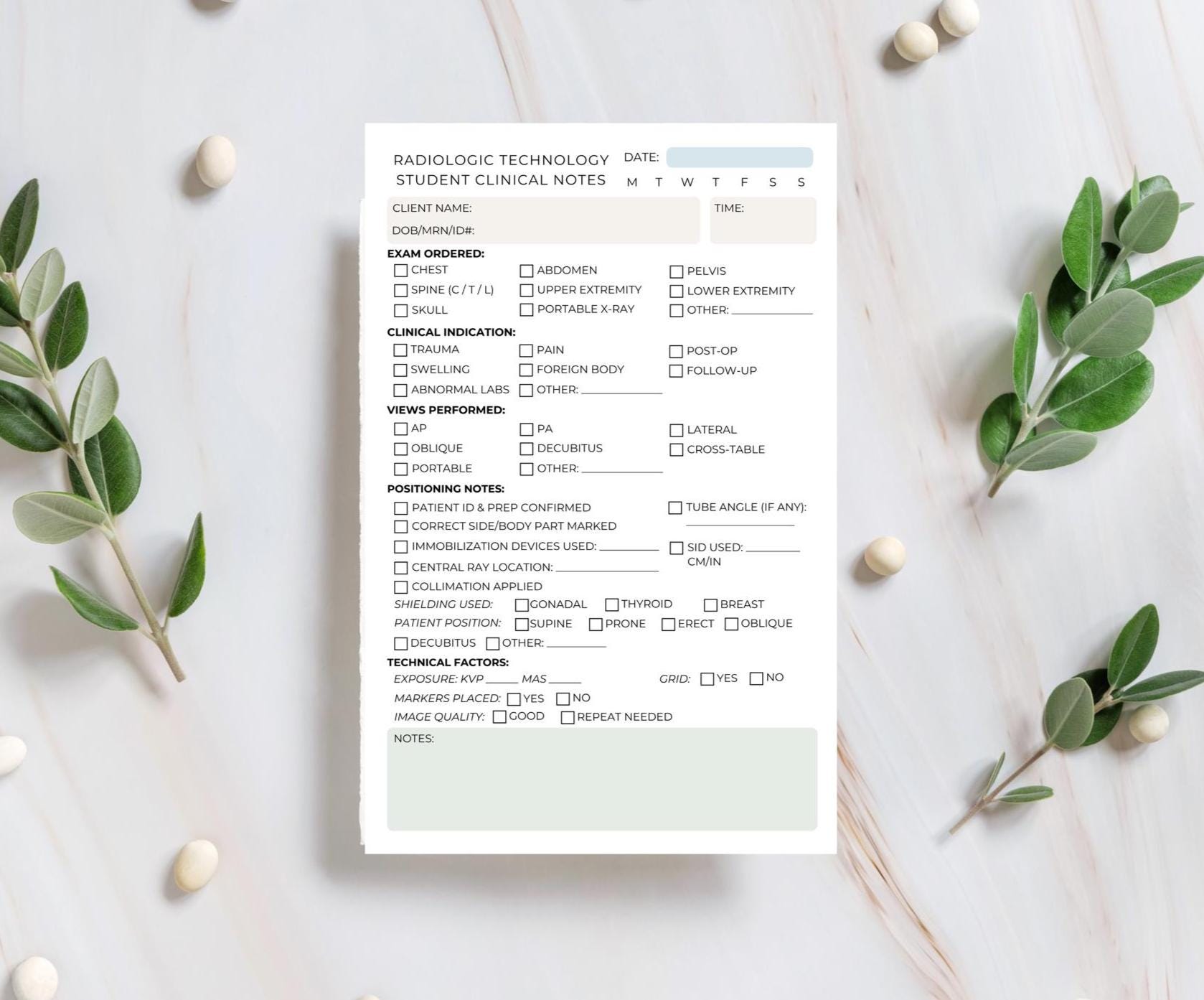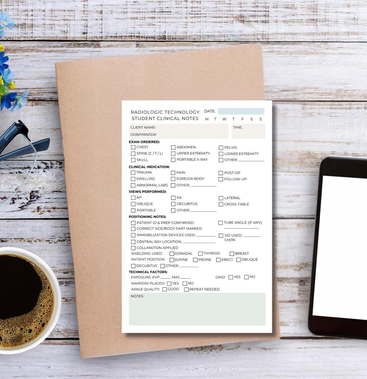 - Radiologic Technology students - X-ray technologist interns - Imaging clinical rotations - Study and review sessions Keep your clinical documentation sharp, professional, and stress-free with a reference tool that works as hard as you do!