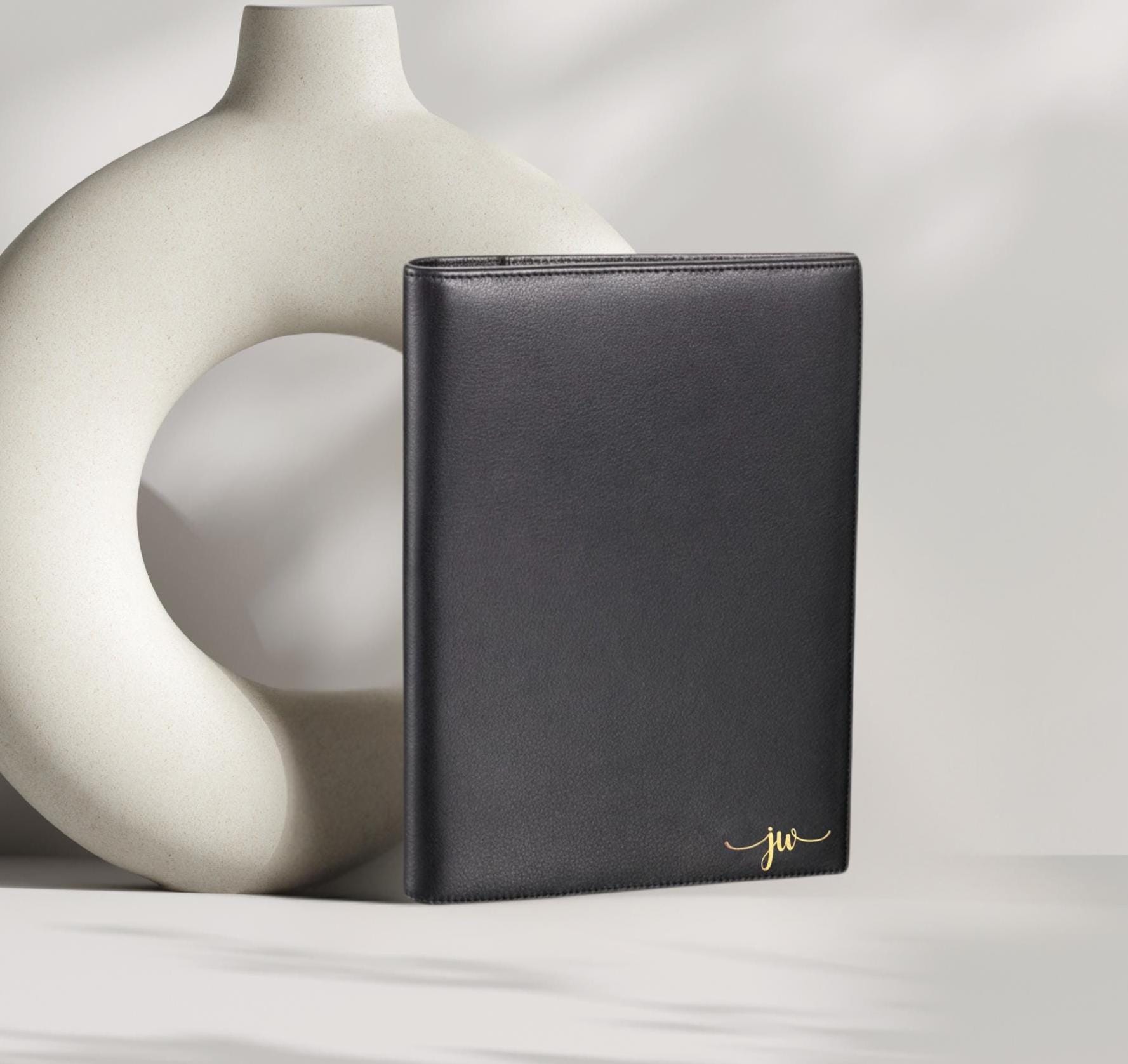 Upgrade your notepad with a sleek, professional padfolio—perfect for taking notes on the go or keeping your paperwork organized in style. This 9" x 7" padded black leatherette padfolio is designed to perfectly hold your 5.5" x 8.5" notepads. It features interior pockets for documents, a built-in card holder, and a secure notepad slot—ideal for clinical rounds, client sessions, or meetings. Make it truly yours with your initials heat-embossed in elegant gold foil on the front cover.