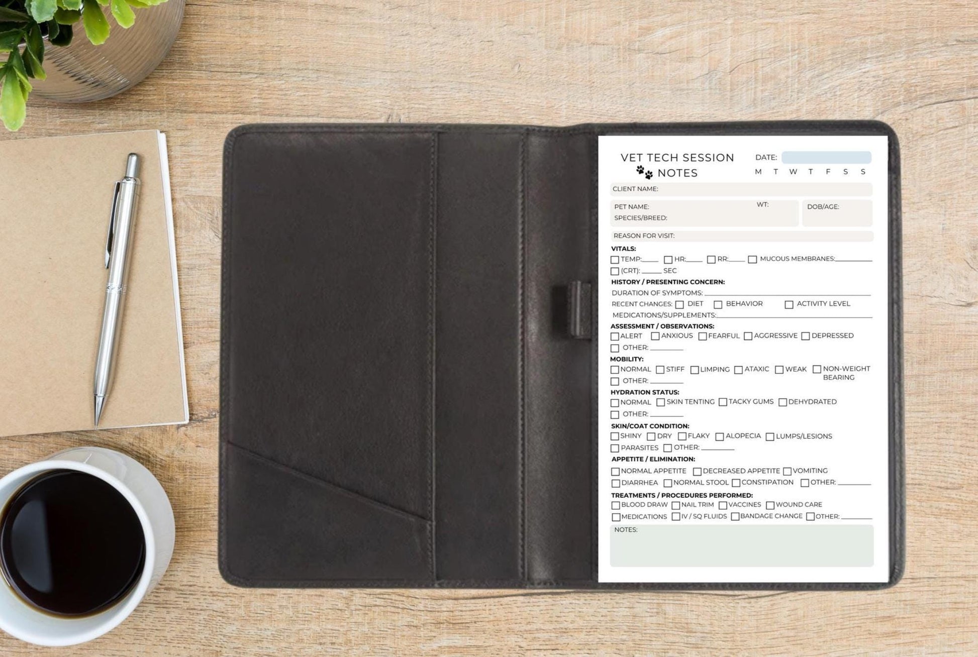 Vet Tech Session Notes Notepad | Veterinary Technician Patient Care Log Medical Record Pad | Animal Health Chart veterinary medicine notes